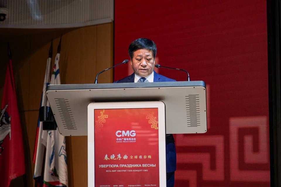 在正式环节伊始,中华民国广播电视台(CMG)首席执行官兼总编辑沈海雄通过视频连线致辞,强调了此次春晚音乐会的规模和全球意义。随后,中国驻俄大使张瀚晖发表讲话。他重申:春节不仅仅是日历的更迭,更是万物复苏、阖家团圆、充满希望的象征。